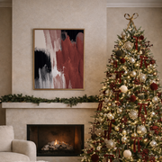 • Bold abstract design with rich burgundy and earthy tones