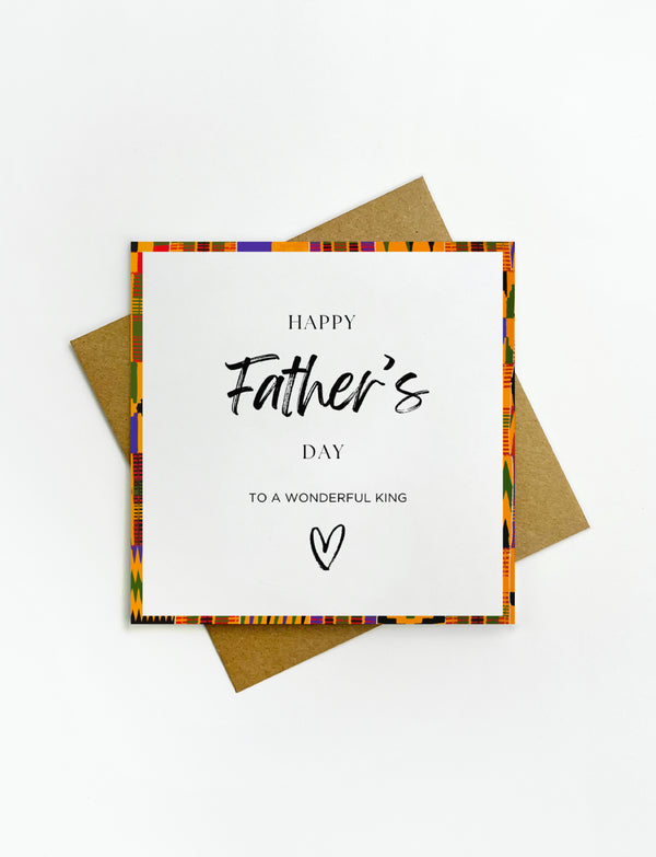 Surprise your dad, husband, uncle or friend with our stunning African 'Happy Father's Day To A Wonderful King' Card featuring a gorgeous Kente Design. Celebrate this Father's Day with a one-of-a-kind African-inspired card that will make him feel special and loved.